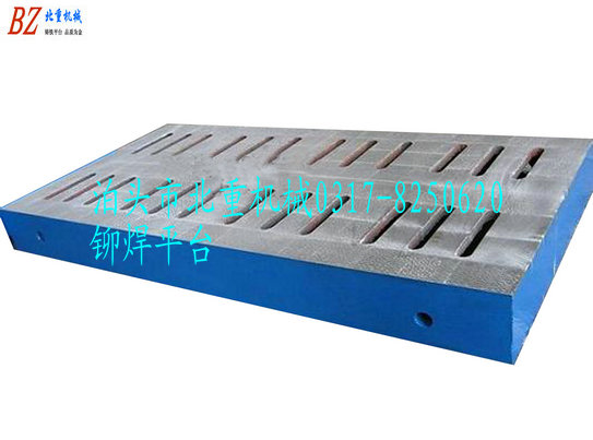 在T型槽鉚焊工作臺(tái)表面上,一層鐵和鑄件之間夾有一層型砂