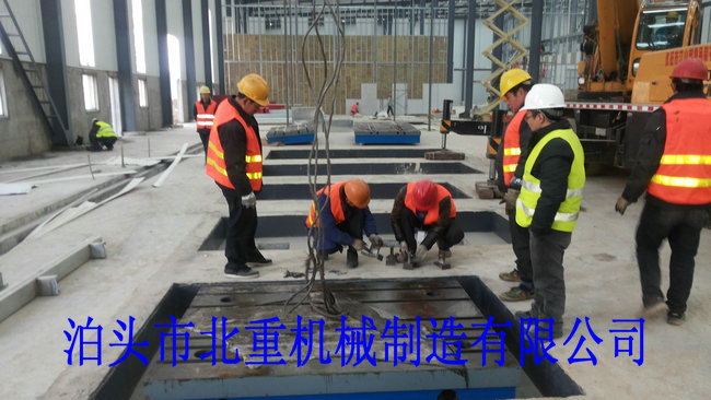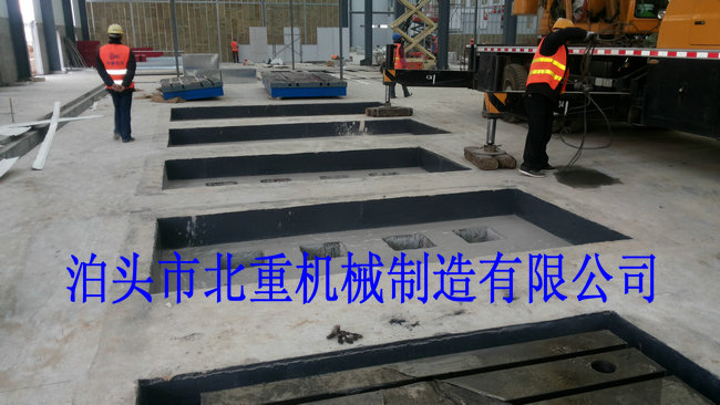 我公司為西門(mén)子電機(jī)制造的6件2500*4000電機(jī)試驗(yàn)平臺(tái)安裝中.電機(jī)試驗(yàn)平臺(tái)表面帶有T型槽,方便固定實(shí)驗(yàn)設(shè)備.T型槽工作臺(tái)采用預(yù)埋的安裝形式,這樣的優(yōu)點(diǎn)是:1.不會(huì)出現(xiàn)平臺(tái)在實(shí)驗(yàn)震動(dòng)下的位移.2.減小震動(dòng)輻射范圍.3.使試驗(yàn)平臺(tái)的壽命和實(shí)驗(yàn)效果大大提高.